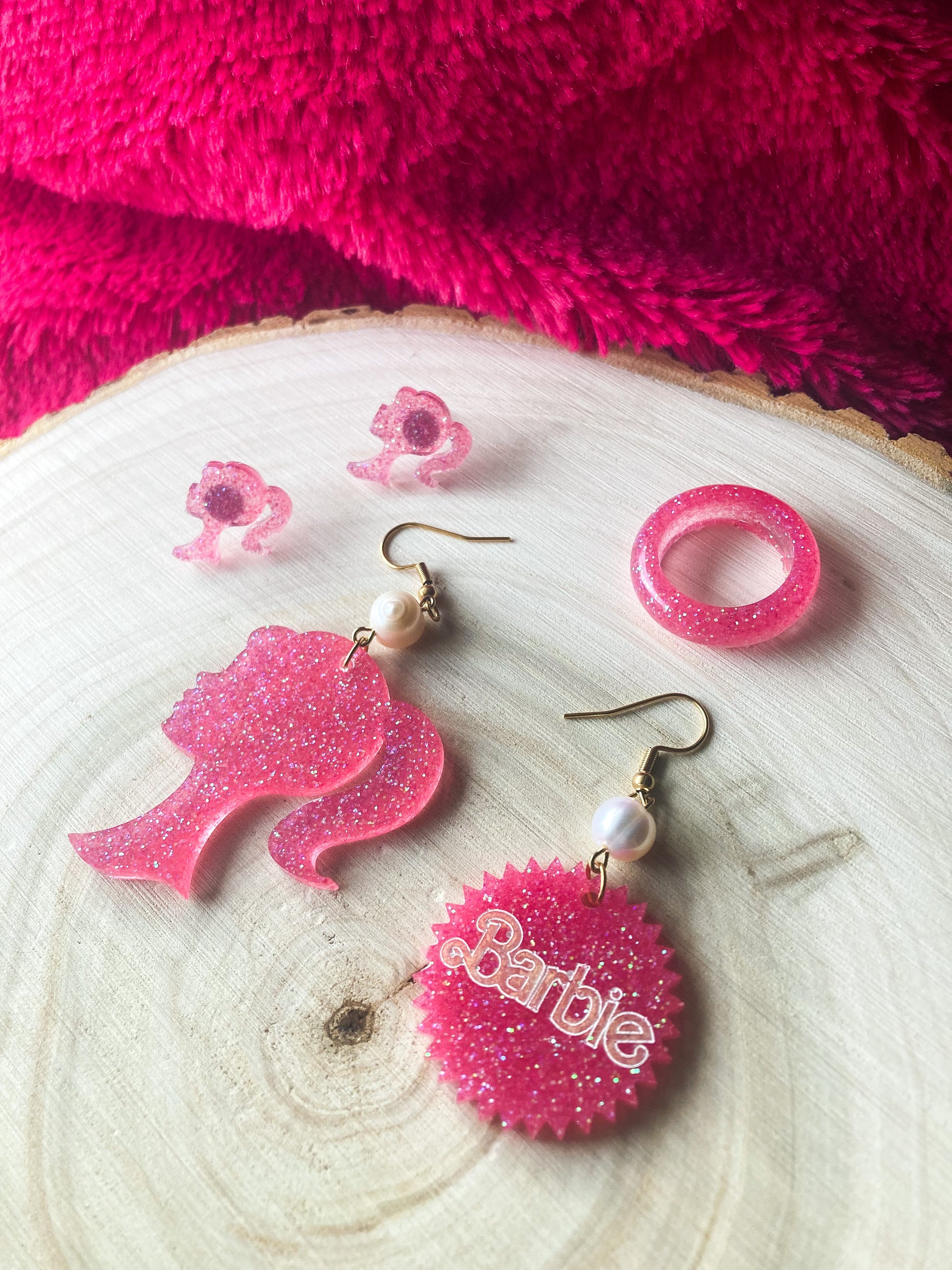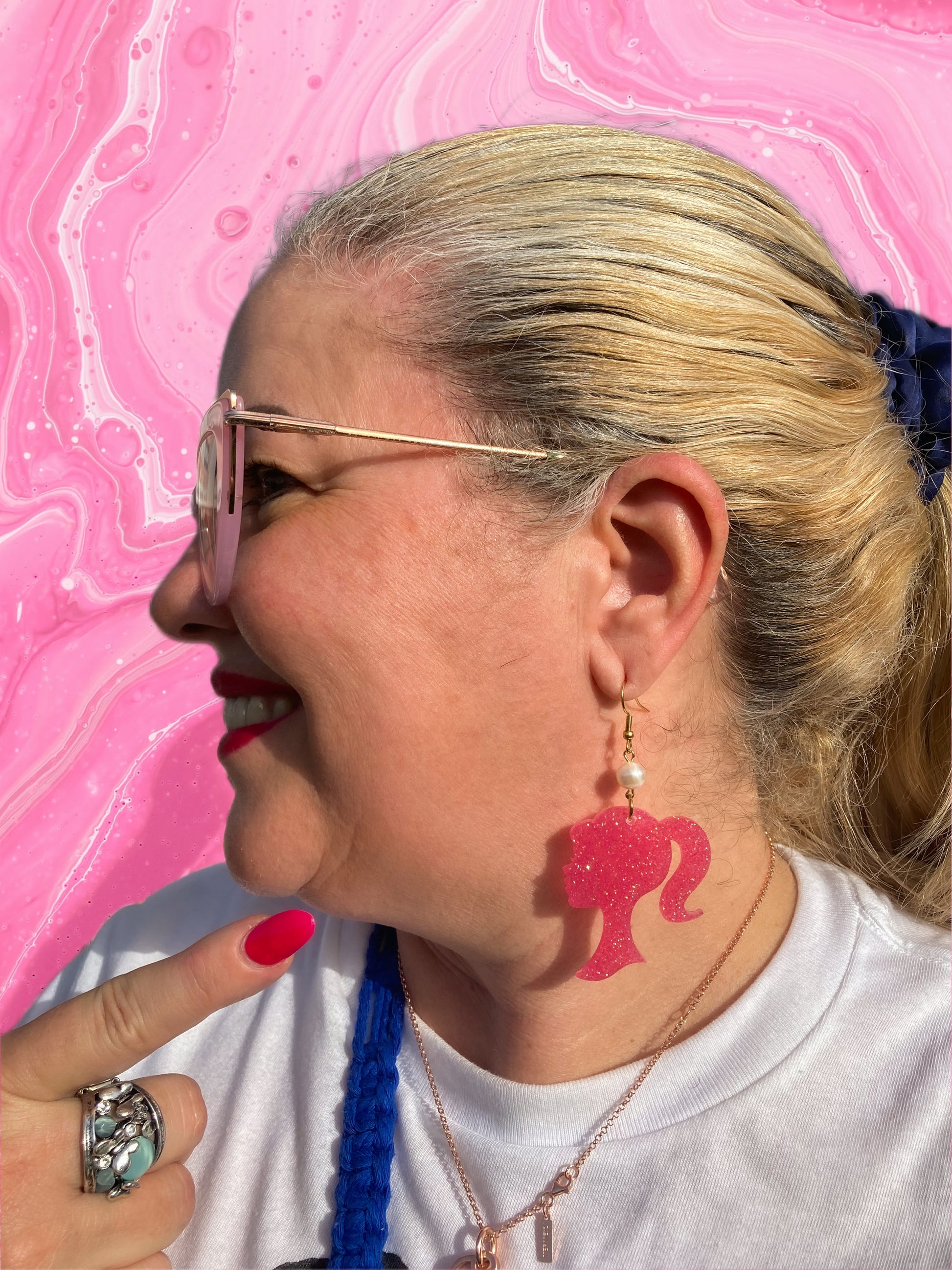 Handmade resin earrings with sweet water pearls. Hooks are gold plated stainless steel. Completely waterproof. Who’s a Barbie girl?