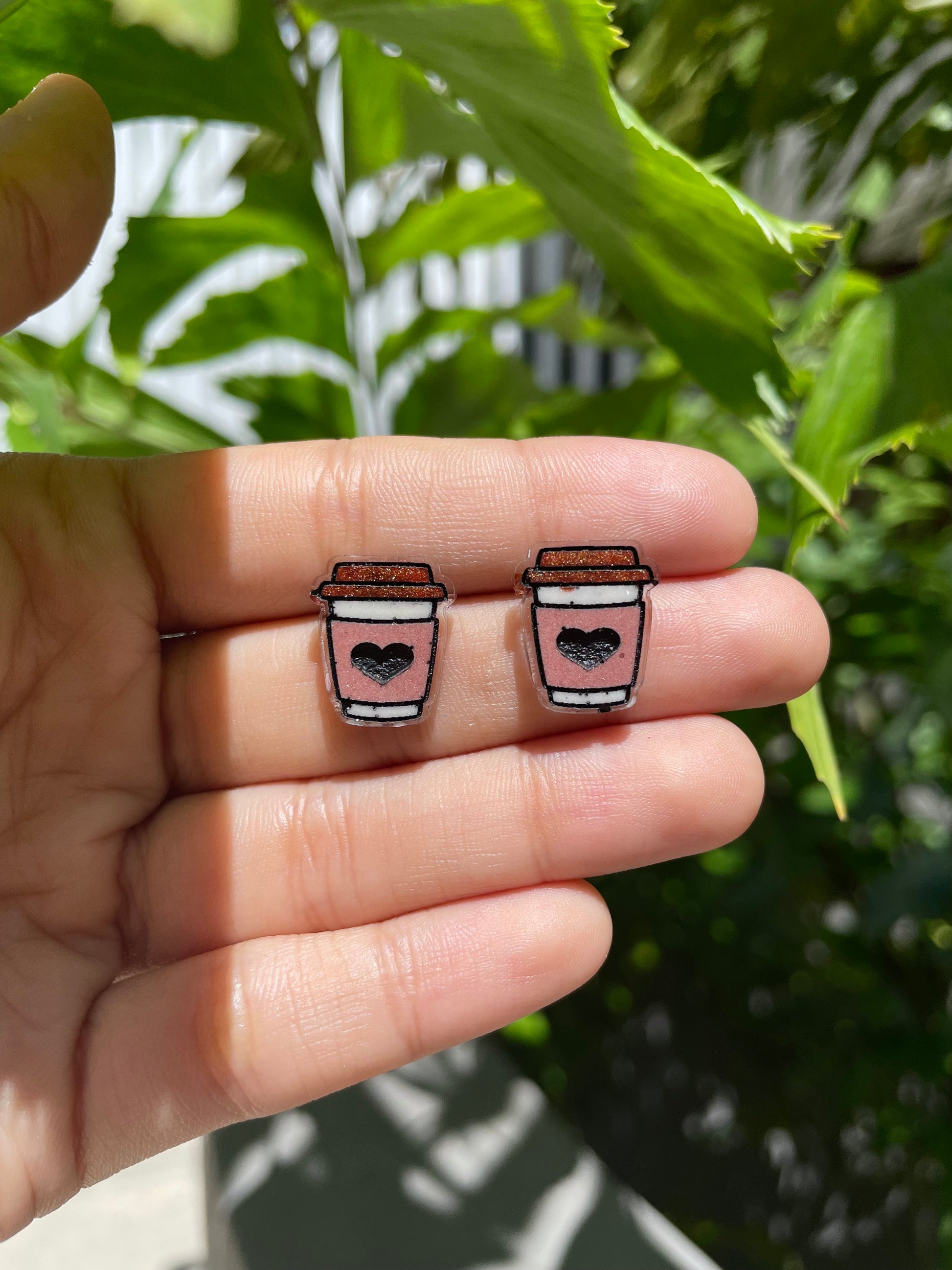 Handmade resin earrings. Studs are stainless steel. Completely waterproof. Perfect for coffee lovers.